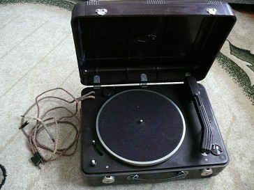 А у меня тоже шедевр появился. Карболитовый проигрыватель Эльфа. Ешё его называют УП-1 (универсальный проигрыватель). Универсальный потому, что в то время пошли долгоиграющие пластинки, которые он тоже мог проигрывать. Игла у него как у патефона. Усилителя нет, выход сделан толстым проводом со звукоснимателя. Исправный, в очень хорошем косметическом состоянии. Только вот иголок в комплекте нет ни одной, придётся поискать. Или выточить из гвоздя, или вытащить из карбюратора.