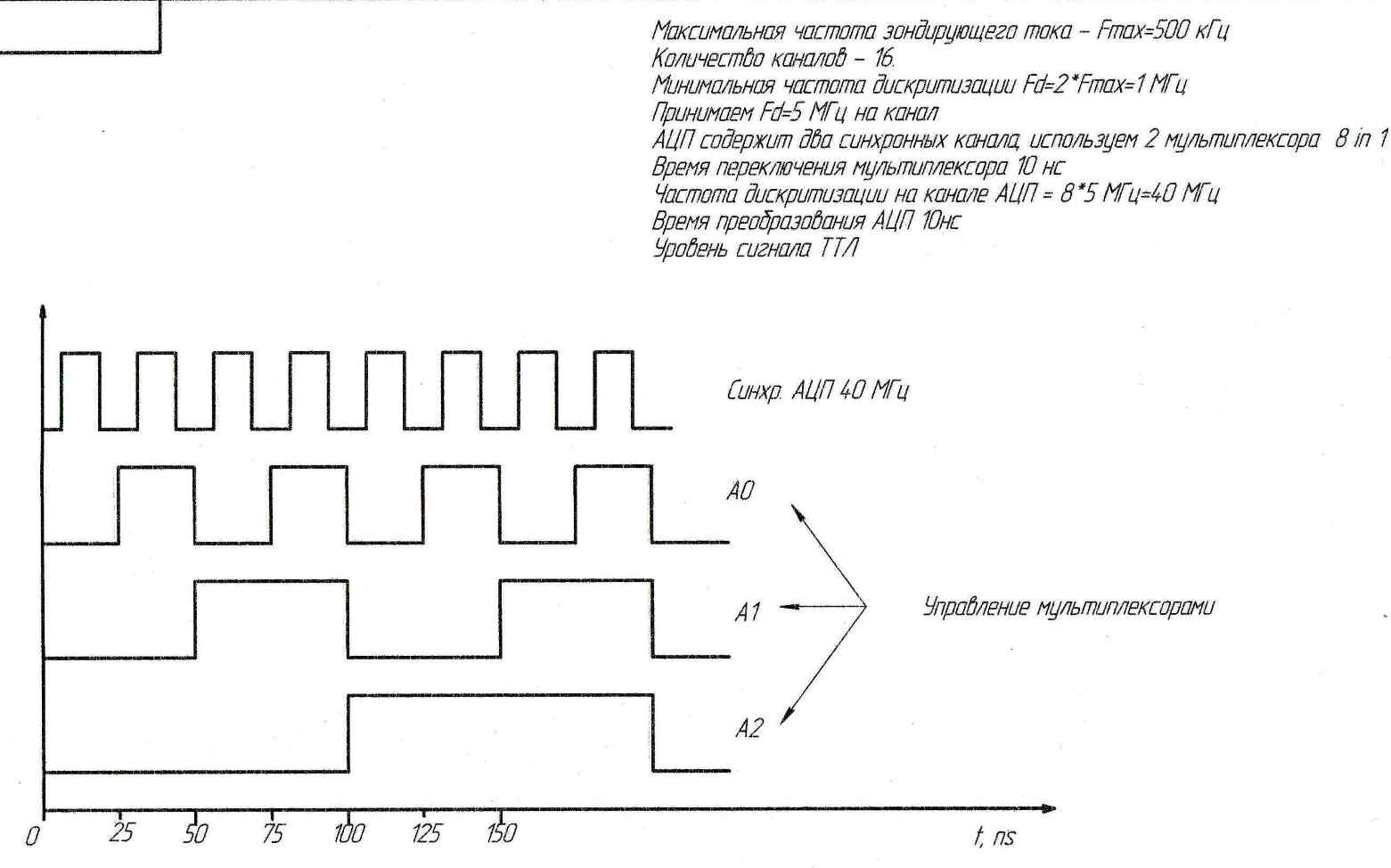 Необходимо синхронизовать работу двух мультиплексоров и АЦП, временная диаграмма сигналов приведена в прикрепленном файле. Там же и описаны параметры данного узла (мультиплексор - АЦП). Как лучше реализовать эти самые управляющие сигналы. Сам планирую использовать кварцевые генератор + делители частоты возможно ли реализовать делители частоты работающие на таких скоростях.