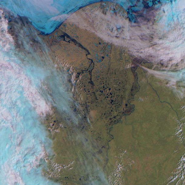 Для примера вот фрагмент вчерашнего снимка Аральского моря. Слева оригинал, справа - после обработки в редакторе:
