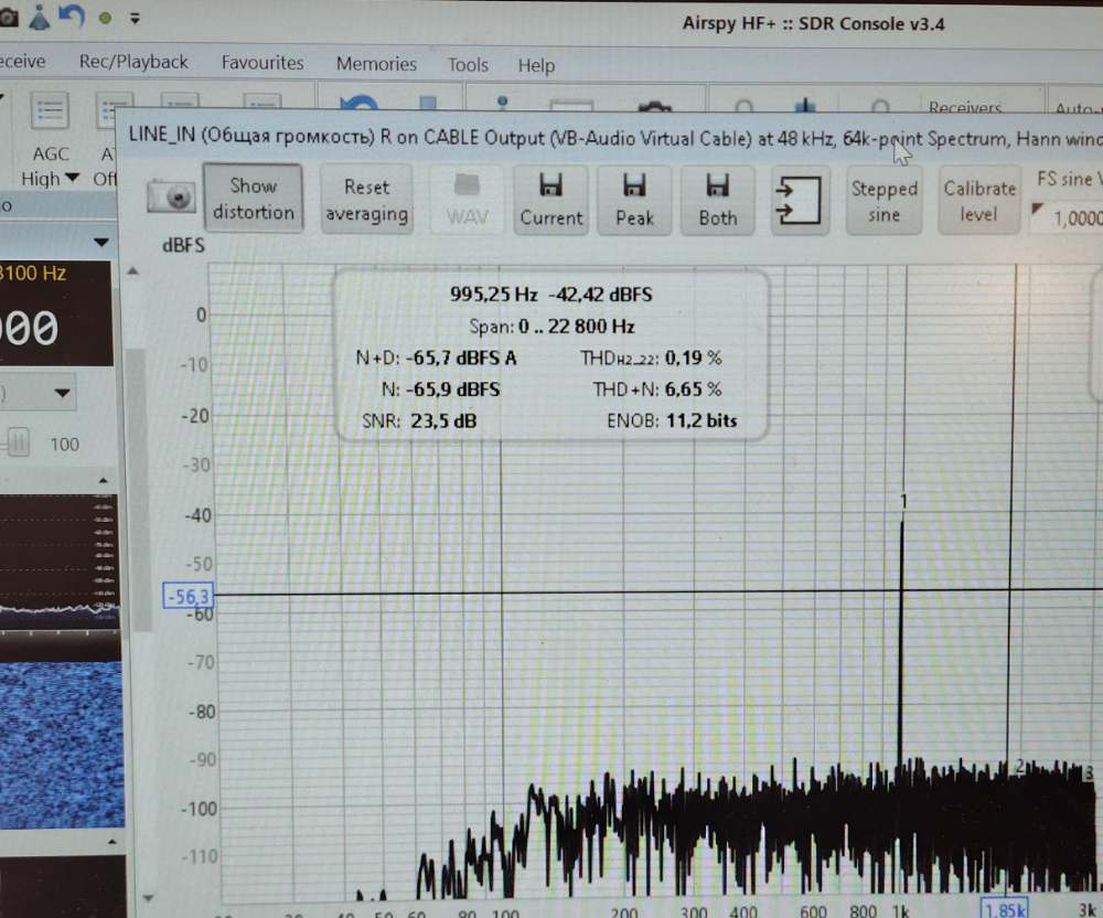 Теперь от гены подаётся примерно -107 dbm, agc-off, usb 0-3000, дальше оценивается деградация сигнал/шум при подключении импульсного БП.