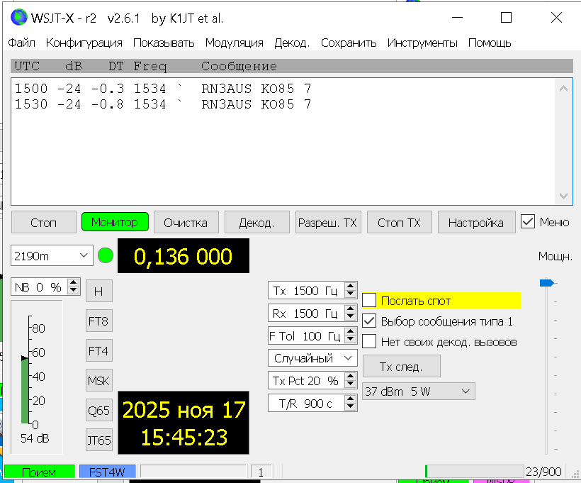 FT8 AA-1-6HP прием Чилийской станции.