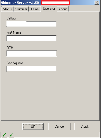 В разделе “Operator” ввести свои личные данные – позывной, локатор и т.д.