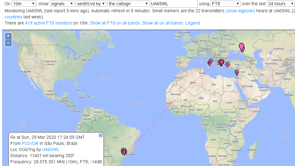 По состоянию на 20:30Z, проход на 28 MHz у на с на юге теплится, судя по мониторингу амторского канала 28074 по моде FT8,
