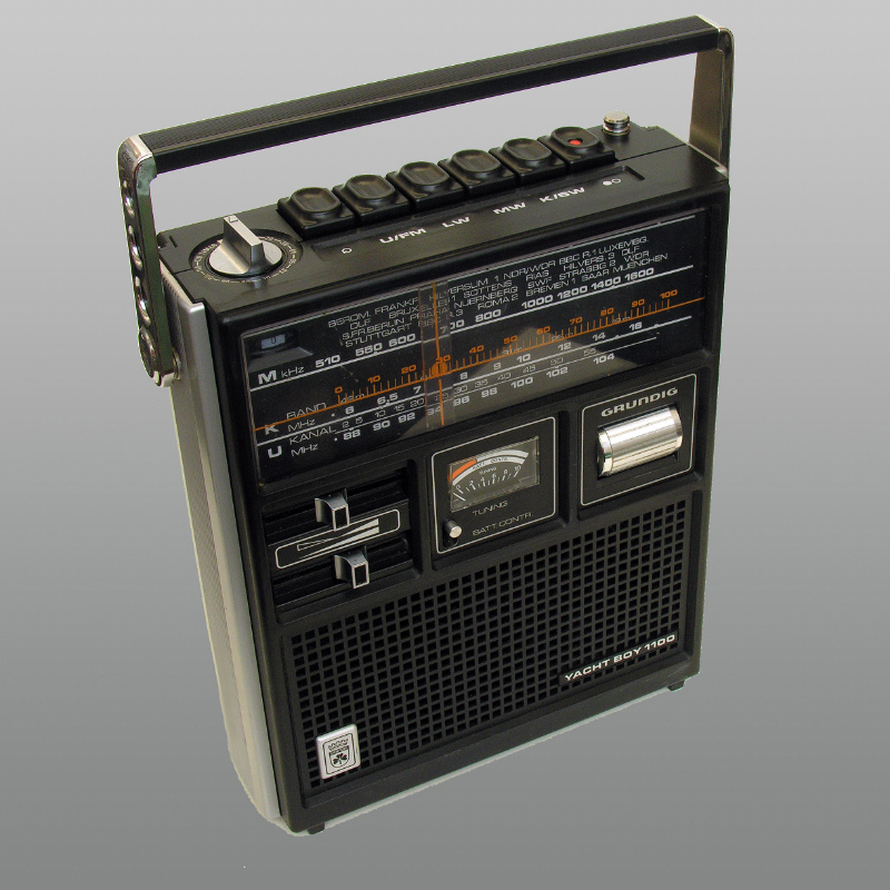 На нижней -тот, что был у отца. Красавец, и точно - "социалистический" брат Грюндика. Только пимпочка телескопа была "тарелкообразная" и металлизированные накладки ручек громкости, тембра и настройки были не ривлённые, а тоже "лунковатые". Золотистый цвет надписей на шкале гармонировал с цветом передней панели и классно переливался на солнышке...