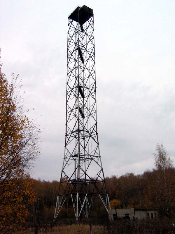Дело было в субботу, 15.10.05, ездил в RDA-экспедицию, как раз возле нужной мне точки на лесной дороге и встретил это чудо. Стоит она отдельно в лесу, от асфальта примерно метров 500; к ней идет дорожка из бетонных плит. Дело было уже в сумерки, был один и торопился, поэтому близко не подходил, но вроде как лестница имеется. Видно, что в лучшие времена все работало, имеется даже фонарь освещения на улице... С Вашей помощью думаю, что это был действительно телеретранслятор, потом его упразднили.