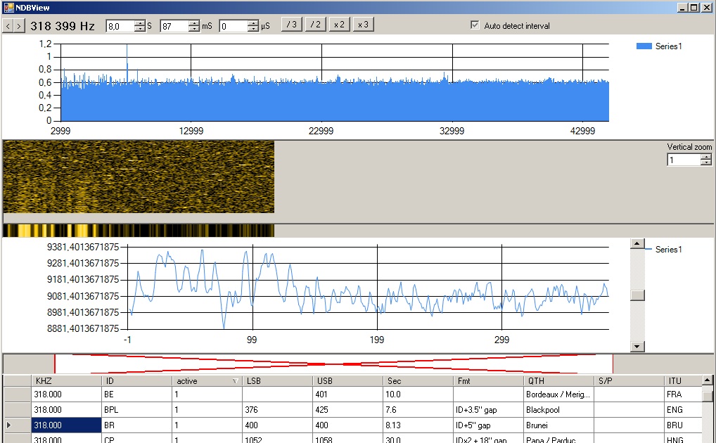Еще важное последствие такой методы - любители приема NDB теперь могут легко обмениваться объективными данными по маякам - в виде такой вот свертки - на которой видны все нюансы манипулятора конкретного маяка - длительность периода, длительности точек и тире, пауз между ними, наличие каких-то "косяков" наподобие сдвига периода. У некоторых маяков даже несущие имеют особености - т.е. автокоррелируют по некоему принципу |