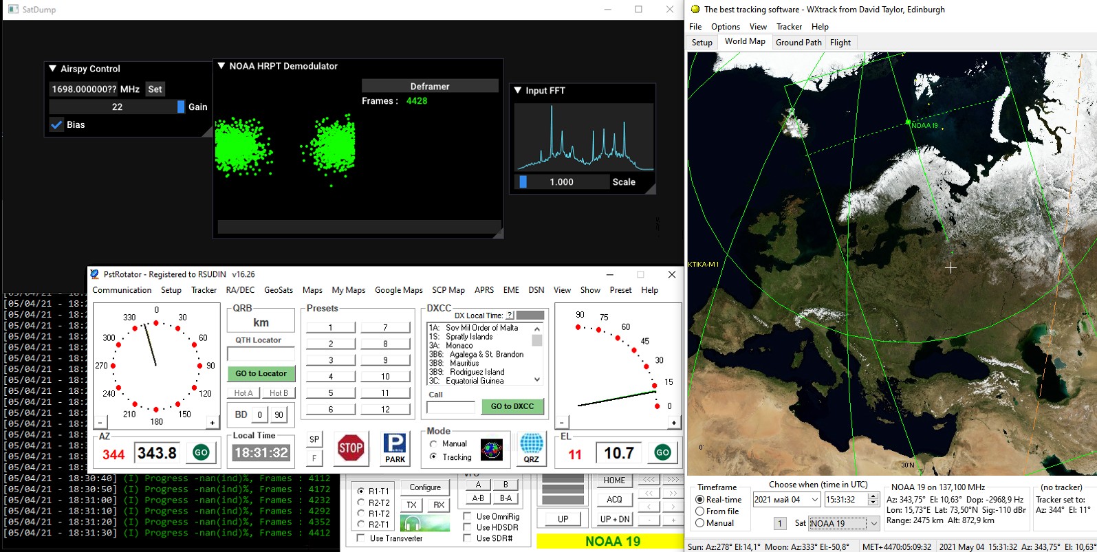 Пример он-лайн демодулирования NOAA-19 с помощью SatDump: