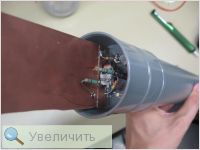 А кто не хочет возится с корпусом вообще, проще веером 3-4 провода на каких-то круглых распорках, вырезанных из текстолита в тумбочке, пустить и вместе с печатной платой всунуть в любую не толстую пласт.трубу. около 30-40мм толщиной. сверху закрепить винтом на лепестке.