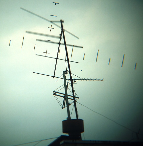 На заднем плане виднеются бывшие коллективные антенны типа волновой канал, метровая (покосившеяся) и дециметровая (пока еще смотрящая на телебашню).