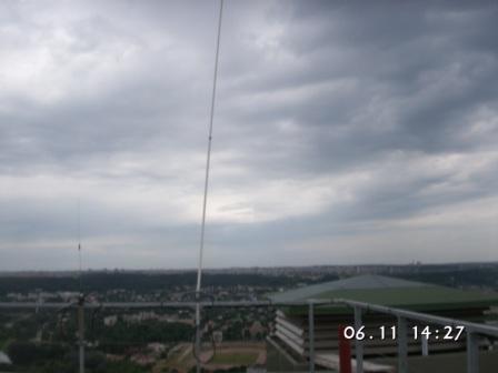 А это уже антенна стоящая рядом, наверно на 2м диапазон. Виднеется прогоревшая дыра, образовавшаяся наверное, после удара молнии.