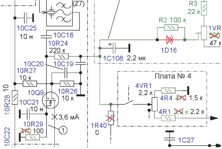 Здравствуйте все участники форума. Прошу подсказать, в каком положении должен быть 4VR1 RF-GAIN при измерении 3.6мА на резисторе 10R28 10ом. Поставил 10R29 100ом. В крайних положениях потенциометра получилось 5мА и 8мА. Понятно надо подгонять под 3.6мА, но какое сопротивление ставить не знаю.