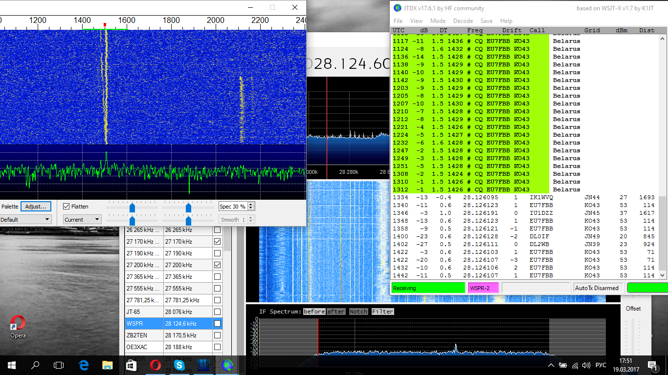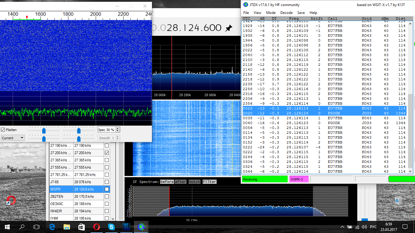 Интересная эта прога. И отражения от самолетов принимаю постоянно и за колебаниями тропосферного прохождения удобно следить, а сегодня ночью в пол 4 удивил прием на 10м PG0DX