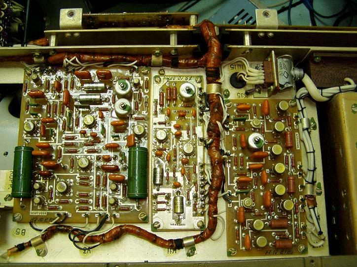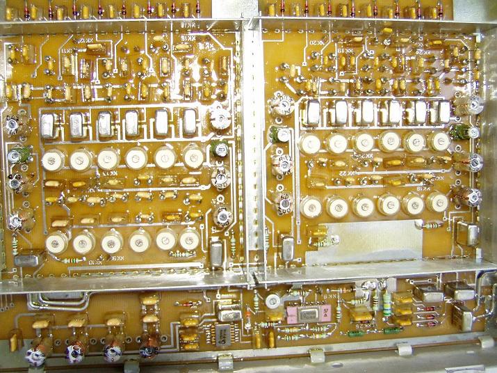 Р-309К"Протон"("Доминанта") Преселектор "узкий" и "широкий". Экранирующие перегородки с крышками 1:1 копирваны у "COLLINS" , а схемотехника "R&S" (дискретно переключаемые конденсаторы), вот только мозгов правильно развести платы не хватило (GND по S - меньше остальных проводников) - работает как антенна, пермалойевые экраны на крышках кассеты даже не спасают.