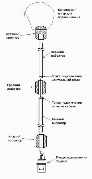 J-антенна. Капризна в настройке - отдельно настраивается резонанс, отдельно КСВ. Длина антенны больше, но зато нет торчащих вбок противовесов. Если использовать латунный или медный пруток, то обязательно покрыть лаком, пока он не окислился - скин эффект и всё такое. Ах, да, дополнительные 3дБ усиления