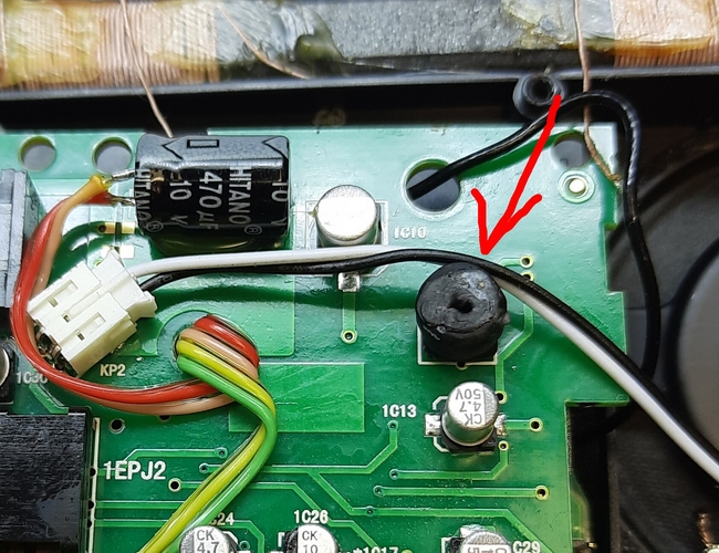 Непонятная деталь меня заинтересовала - по цвету совпадает с подстроечниками, но форма весьма затейливая. Не видно на плате маркировки, поэтому не смог понять по схеме, что это такое.