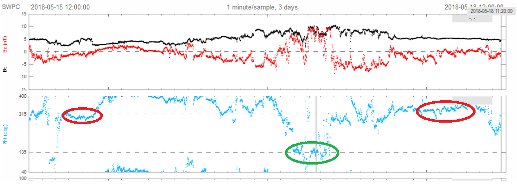 Сейчас была гроза, ловит МП от ТОКА грозовых разрядов, с учетом полярности.