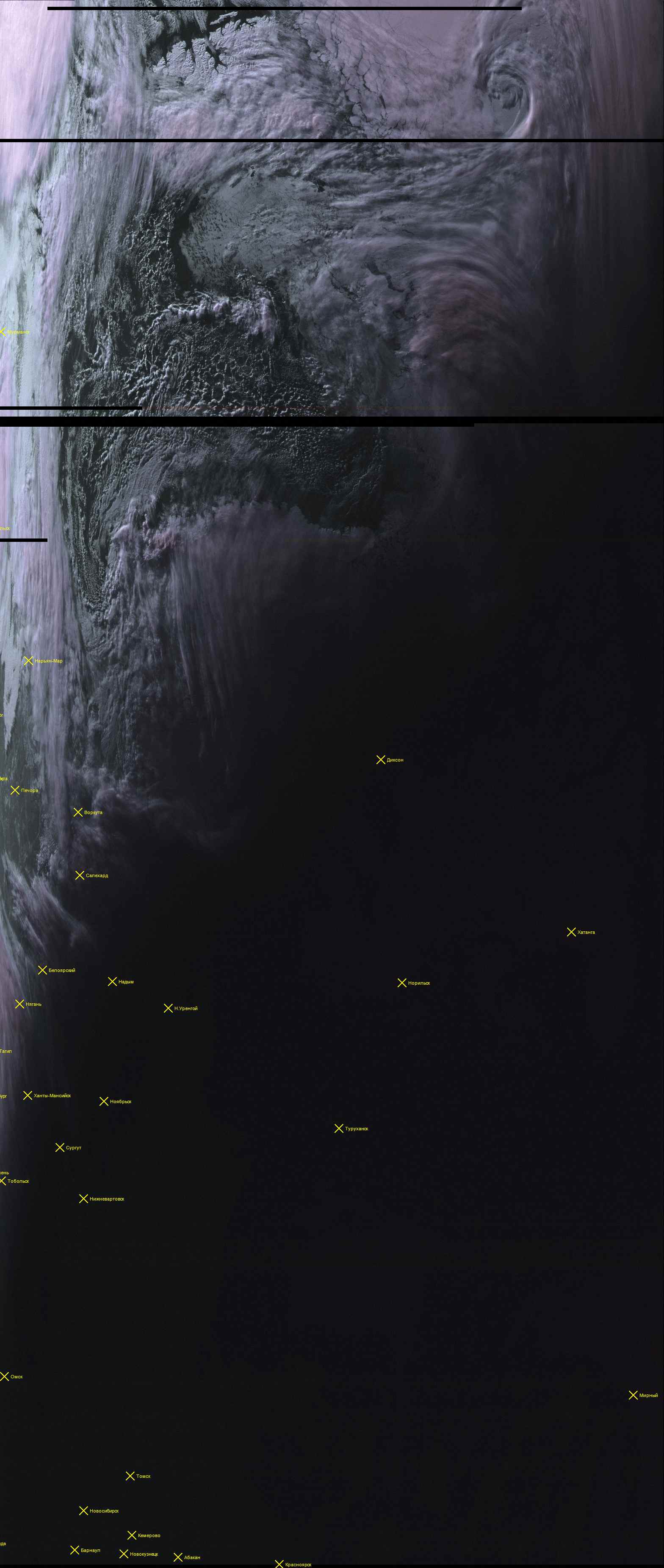 Скорее всего, это моменты переполнения буфера. Про это ранее уже было обсуждение ещё в самом начале после появления софта для декодирования картинок... Проявляется в виде отсутствия строк каждые 6 минут. Это при одновременном присутствии изображения во всех трёх каналах.