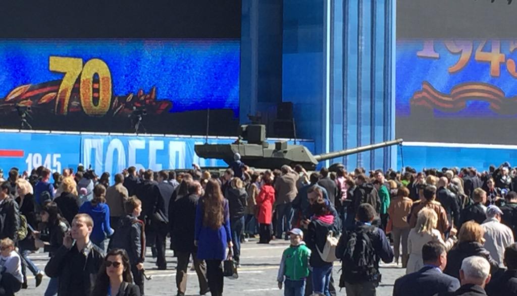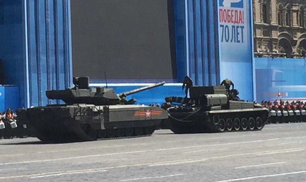"Армата" посреди Площади встал. Мешал потом марширующим. К нему успели тягач подогнать.