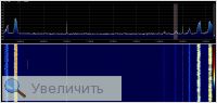 Аналогично на любом диапазоне и полосе обзора, если есть сигнал выше/ниже полосы обзора, он зеркалится на противоположную сторону, тоесть если сигнал выше - он появляется внизу и наоборот.
