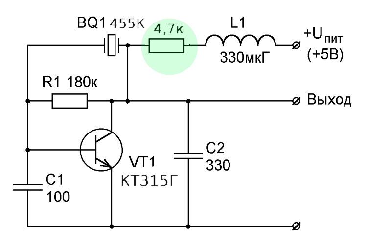 первый попавшийся под руку кварц, на 455КГц.