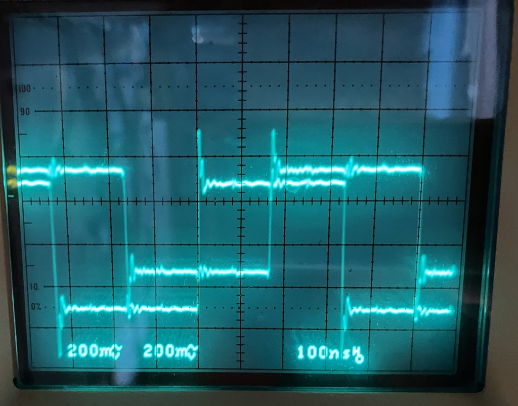 Как тут увидеть ошибки в единицы наносекунды? Сегодня еще цифровой USB осцил достану проверю. А так, на вид вроде все ровно/одинаково.