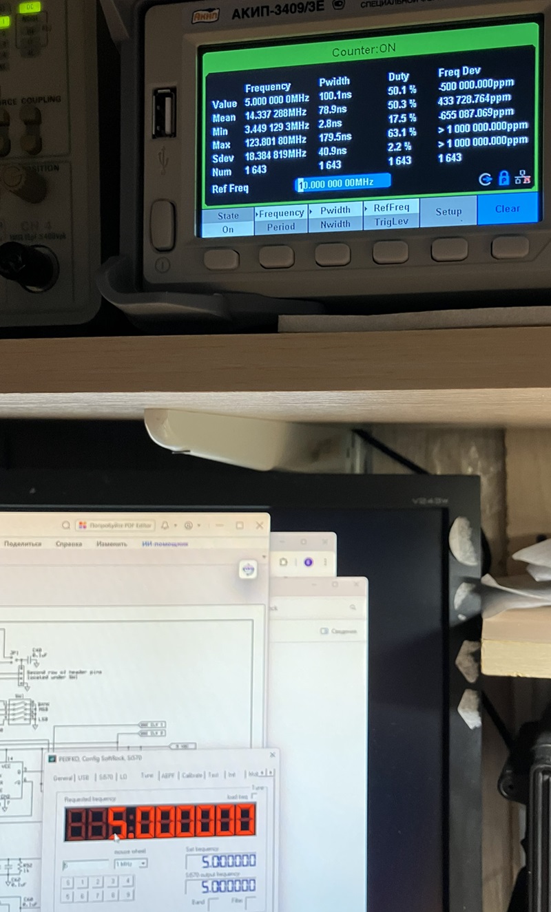 частота с Si570 была 6МГЦ (заодно откалибровал по частотомеру до 0.5Гц), частота на выходах 74АС74 на картинках 1.5Мгц