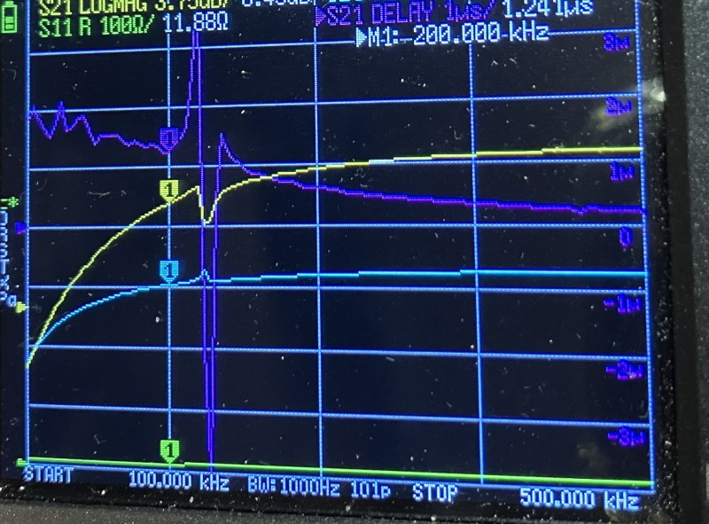 вот только вопрос, что за выпад такой на частоте 225кГц (на картинке справа от курсора 1), характеристика DELAY (не знаю что это у Нановны) особо остро реагирует в этой точке.