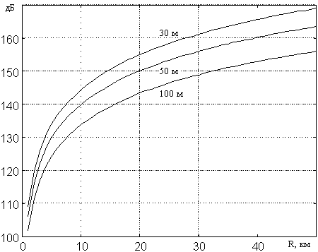 по графикам на рис. 1 и 2 найдем дальности связи. Результаты для