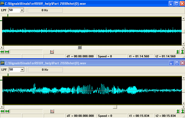 Честно говоря, не вижу более действенного и быстрого способа освоить такое не хитрое дело, как "анализ сигналов", чем брать реальные примеры(на форуме их достаточно) и начинать их расковыривать, но прежде чем предлагать бросаться на амбразуру, хочу показать, что в принципе даже имея только такой очень распространенный инструмент, как просто вьювер спектра, можно кое-чего узнать по записи интересное, попутно, очень надеюсь, что эти, в общем то не сильно сногcшибательные выводы, ясно покажут, что в большинcтве случаев не требуется ни каких сверхъестественных ни знаний ни способностей, просто нужно внимательно смотреть и понимать что видишь.
