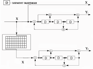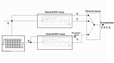 Рис. 6. Турбо-кодер, используемый в стандарте UMTS для мобильных систем третьего поколения