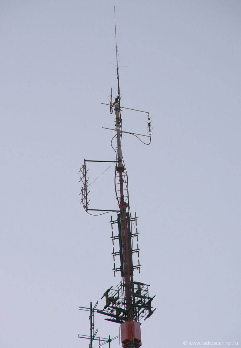 На мачте - антенна РПА-2П, панели GSM и CDMA, ТВ-вещание, различные штыри